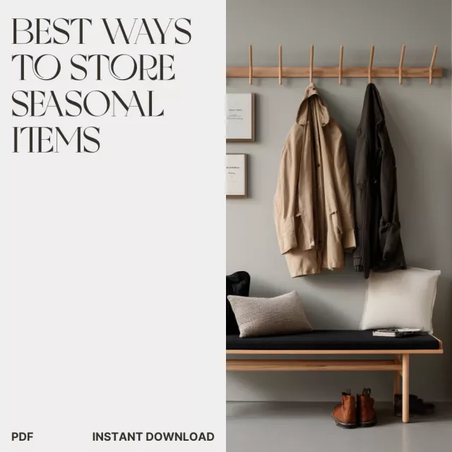 Best Ways to Store Seasonal Items Efficiently Checklist | Digital Download Home Organization Guide | Decluttering, Storage, and Space-Saving Tips